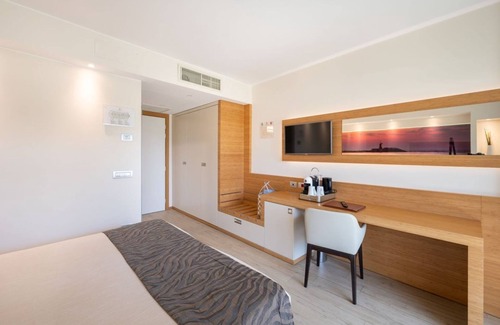 El baño cuenta con cabina de ducha, secador de pelo y artículos de aseo Bibione Thermae. Esta habitación incluye wifi e internet LAN de alta velocidad gratuitos, televisor LCD de 32°, caja fuerte, minibar y cafetera.