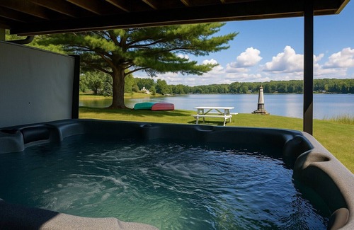 Lakefront Cottage Getaway with Hot Tub, Golf and Pool Access Se encuentra en Canadian Lakes. Lakefront Cottage Getaway with Hot Tub, Golf and Pool Access ofrece alojamiento, con Entretenimiento, Niño amigable, Bañera de hidromasaje, Entre otras comodidades. Estas características Cabaña Entretenimiento, Niño amigable, Bañera de hidromasaje, Para que su estadía sea cómoda.