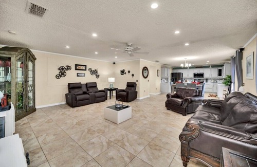 Esta villa de 6 dormitorios y 3 baños está ubicado en Kissimmee, una ubicación ideal para explorar los alrededores. A los amantes de la naturaleza y el aire libre les encantará estar a 27min en coche de Lago Tohopekaliga y a 38min de Bok Tower Gardens. Puedes conducir 21min hasta Southern Dunes Golf Club o 21min hasta Southern Dunes Golf and Country Club (club de golf y campestre).