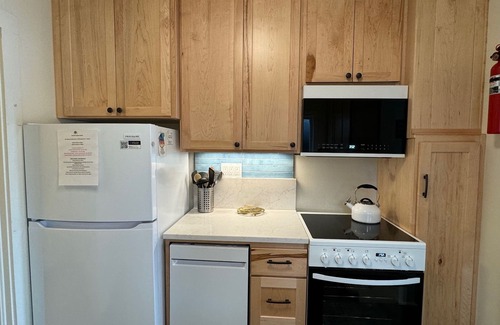 Las comodidades incluyen una cocina completamente amueblada, sala de estar y comedor con vista al mar, HDTV / reproductor de DVD, WiFi, sintonizador de FM con cable para iPod. Asegúrese de revisar nuestra última adición: un mural recientemente agregado pintado por el muralista de Oregon Corie Hinton. Es un regalo visual que lo espera cuando abre la puerta de la cocina.