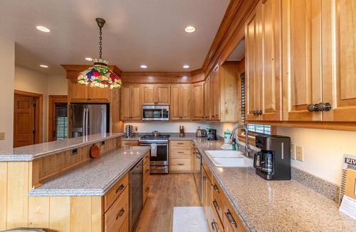 Este alojamiento de 3 dormitorios y 3.5 baños cuenta con una sala de estar, una zona para barbacoas, chimenea y aire acondicionado. La cocina está equipada con horno, placa de cocina y frigorífico, además de cafetera y tetera, máquina de hielo y microondas. Podrás viajar con poco equipaje, porque tendrás una lavadora y una secadora a tu disposición.