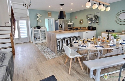 Your vacation rental includes on the ground floor: a large living room with fitted kitchen, living room, living room with connected TV (think about your codes, Netflix, etc.) and sound bar, separate toilet, utility room. On the 1st floor: A lounge area, a desk for your telework, a separate toilet, a large bedroom with 1 160x200 bed with its private bathroom (shower), bathroom with bath (shower screen), a bathroom play area with children's games and books, a children's bedroom with 4 90x190 beds (bunk). On the 2nd floor: large landing leading to 3 bedrooms with 3 140x190 beds, bathroom with shower and toilet. Outside you have a beautiful wooden terrace with gas barbecue overlooking a common courtyard with other dwellings of 70 m², the parking of your vehicles is done in public parking 30 m from the cottage. Come and stay in this large house in the center of Matignon, where you will enjoy all these shops on foot and its large market on Wednesday mornings. You will appreciate its large terrace at the back of the house, overlooking the common courtyard (no parking in this courtyard). At your disposal fitness equipment: treadmill, rowing machine, elliptical trainer, ideal for keeping in shape during your holidays! Take advantage of your stay to discover, 5 km from your rental, the seaside resort of St-Cast-Le-Guildo, its port, its coastal paths and its seven fine sandy beaches! Don't miss Cap Fréhel, an impressive site whose cliffs tower 70 m above the sea. Take the time to stop at the castle of Fort la Latte 15 km away, where many film shoots have been made, the latest being -The Three Musketeers-. Some famous cities to visit: the corsair city of St-Malo, 30 km away and Dinan 28 km away, an old medieval town.