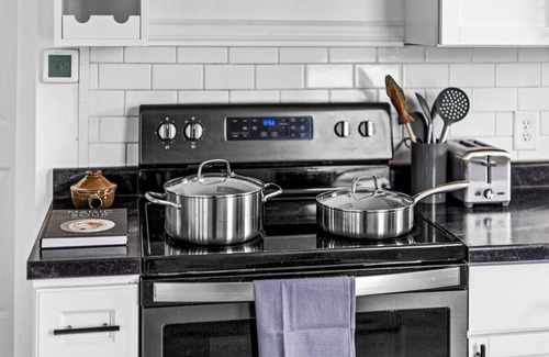 Prepara una comida casera en la cocina, equipada con horno, placa de cocina y frigorífico, además de microondas y tostadora. Y gracias a la lavadora y la secadora, podrás viajar con poco equipaje. Otras comodidades de este alojamiento de 4 dormitorios y 2 baños incluyen una tabla de planchar y calefacción.