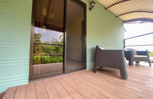 El balcón exterior te brinda un ambiente moderno, tropical, atípico, con iluminación natural, impresionantes vistas, construido en la selva y lo más sustentable posible.