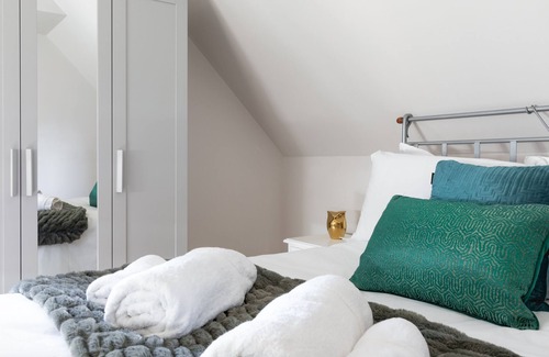 Spacious 3 bedroom townhouse-style, mews apartment on the very quaint and pretty Brights Path, one of Maldon's lovely little Mews. On the first floor there is a large main bedroom with double bed, a spacious open plan kitchen / lounge overlooking Mrs Salisbury Tea Rooms, the 3rd bedroom with single bed, and a family bathroom. On the second floor there is an open space bedroom with twin beds and an En Suite bathroom. All, in a lovely location, and right on the High Street