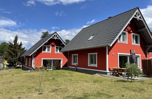 Landhaus am Plätlinsee is a child-friendly and cozy residence constructed in 2019, encompassed by trees and meadows. This comfortable property offers a vacation rental opportunity with 4 houses within the residence. It features a yard, internet WiFi, parking facilities, and an installment plan option.