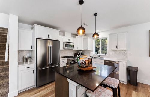 Al instalarte en este alojamiento de 3 dormitorios y 1.5 baños, encontrarás una sala de estar, una zona para barbacoas, chimenea y aire acondicionado. El cuarto de baño incluye un secador de pelo, toallas y papel higiénico. Prepara una comida casera en la cocina, equipada con horno, placa de cocina y frigorífico, además de cafetera y tetera, hervidor eléctrico y máquina de hielo. Y gracias a la lavadora y la secadora, podrás viajar con poco equipaje.