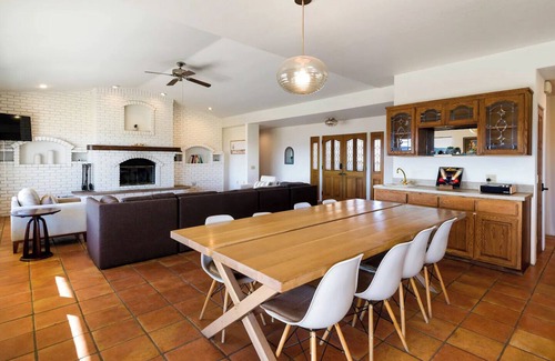 The Joshua Tree Villa is a desert hilltop paradise located with prime mountain views of the National Park. This stay is focused on bringing together both groups & couples through a quality space, good conversation, and all that Joshua Tree has to offer. The kitchen is fully stocked, there is more than enough room for everyone, and every room was designed to make your stay fun and memorable.