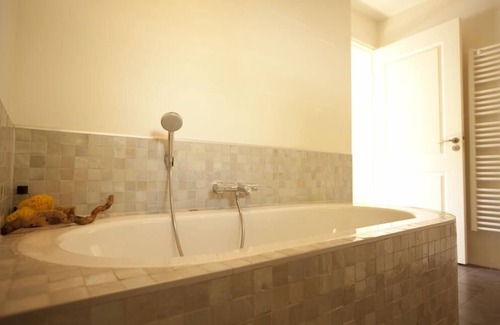 On the lower floor: three bedrooms each with one fixed bed (90 x 2. 00). A second bathroom with steel bath, a large "walk-in" shower with rain shower and hand shower. There you will find a usefull washing machine (Miele) and tumble dryer.