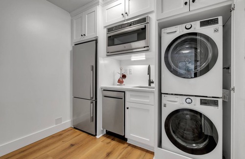 La cocina está equipada con horno, frigorífico y lavavajillas, además de cafetera y tetera, microondas y utensilios de cocina. Conéctate al wifi gratis, o relájate frente a un Smart TV. El cuarto de baño incluye un bidé, toallas y papel higiénico. Podrás viajar con poco equipaje, porque tendrás una lavadora y una secadora a tu disposición. Otras comodidades de este alojamiento de 1 dormitorio y 1 baño incluyen ropa de cama, aire acondicionado y calefacción.