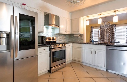 Al instalarte en este alojamiento de 5 dormitorios y 3 baños, encontrarás una sala de estar, un comedor, una zona para barbacoas y chimenea. El cuarto de baño incluye un secador de pelo, toallas y papel higiénico. Prepara una comida casera en la cocina, equipada con horno, placa de cocina y frigorífico, además de cafetera y tetera, máquina de hielo y microondas. Y no tendrás que llevarte ropa de más, porque podrás aprovechar la lavadora y la secadora.