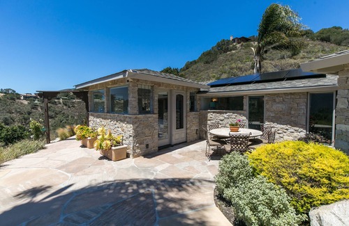 En las colinas sobre Carmel Valley Village, un destino para los amantes del vino, Carmel Valley Top of the Hill es un tesoro de 2.5 acres rodeado de palmeras y vistas de 280 grados. El adobe Top of the Hill tiene encanto, carácter e historia, ha sido restaurado a su estilo español original y está lleno de tesoros de México, España y América del Sur. Carmel Valley Top of the Hill está a cinco minutos de restaurantes y degustaciones de vinos en Carmel Valley Village y a 20 minutos de destinos de Carmel by the Sea que incluyen playas, tiendas y restaurantes y numerosos campos de golf en Pebble Beach. Garland Ranch y muchas otras rutas de senderismo están a solo unos minutos. Disfrute de las vistas desde la bañera de hidromasaje que domina las colinas cercanas, juegue bochas en la cancha, haga humo sobre la gran fogata al aire libre, mientras disfruta de las vistas de las colinas de Santa Lucía desde todas las direcciones. La cima de la colina tiene 4 habitaciones con una cama King de California y tres camas Queen. Dos habitaciones tienen televisores. Hay tres baños en la casa, incluido el baño principal en suite con ducha grande y bañera separada. El baño principal grande y personalizado tiene puertas francesas que se abren al patio y al patio trasero. La casa de Top of the Hill tiene una cocina totalmente equipada ubicada al lado de un comedor rodeado de ventanas que dan al valle. El comedor puede acomodar cómodamente hasta 12 personas. La gran sala familiar tiene TV, DVR, libros y juegos con una mesa de juego con capacidad para 8. Hay una sala de lavandería con lavadora y secadora. Múltiples patios de losas se envuelven alrededor de la cima de la colina. Relájese en la cama de día al aire libre o siéntese en una de las tres mesas al aire libre. The Top of the Hill se encuentra al final de un carril tranquilo que sube a la cima de una colina, ofreciendo a los huéspedes vistas infinitas de las colinas. Hay mucho estacionamiento dentro de la propiedad privada y cerrada. El establecimiento admite mascotas. Hay un cargo adicional por mascotas