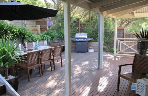 Alejarse del ajetreo y el bullicio y relajarse en Rye. Disfrute el estilo de vida tranquilo que la Península de Mornington tiene para ofrecer. Esta casa temática de playa tiene un plan abierto. Se encuentra a 1,5 km de la playa de surf y surf.