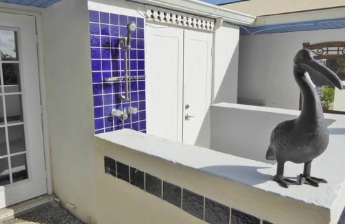 Desde la piscina hay una ducha al aire libre y discreta entrada a la suite principal. El Master suite privada tiene una cama king-size, y se conecta directamente con la sala de estar, con vistas al mar. El baño principal, junto a la sala de estar, tiene un pie en el armario y una ducha abierta con un vaso de ida para una vista al mar. El salón tiene una cómoda cama de día, un televisor, y un sistema de juego de Wii.