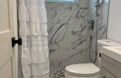 Este alquiler de vacaciones cuenta con un comedor, aire acondicionado y escritorio. El cuarto de baño incluye un secador de pelo y toallas. Prepara una comida casera en la cocina, equipada con horno, placa de cocina y frigorífico, además de cafetera y tetera, máquina de hielo y microondas. Y no tendrás que llevarte ropa de más, porque podrás aprovechar la lavadora y la secadora.