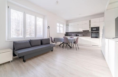 The apartment's location is strategically excellent, situated right next to Dejvicka metro station. This means that you can reach the historic city center within 10 minutes.