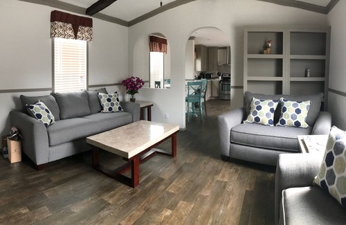 Esta es una casa móvil 2017 bien amueblada con muebles nuevos. Cada habitación tiene un televisor con cable y ropa de cama cómoda. El principal tiene una cama king, el segundo dormitorio tiene una cama queen y el tercer dormitorio tiene dos camas individuales. La cocina está totalmente equipada y hay una lavadora y secadora para su comodidad. La playa está a solo 5 km y el museo Navel a 10 minutos. Las tiendas de comestibles están a solo unos minutos. También está ubicado en una calle tranquila en un barrio tranquilo.