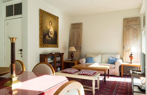 Los interiores de estilo neoclásico están decorados de forma elegante. Solería de mármol blanco contrasta con muebles sólidos de madera oscura, alfombras coloridas y obras de arte originales. El apartamento está equipado con aire acondicionado centralizado (con sistema mixto de refrigeración y calefacción) e internet de alta velocidad por fibra óptica.