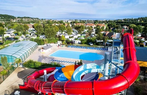 Mobilheim A/C Se encuentra en Houlgate. Mobilheim A/C ofrece alojamiento, con Aire acondicionado, Estacionamiento, Piscina, Entre otras comodidades. Estas características Casa Aire acondicionado, Estacionamiento, Piscina, Para que su estadía sea cómoda.