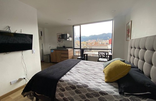 Este apartamento de 1 dormitorio y 1 baño está ubicado en Bogotá, una ubicación ideal para explorar los alrededores. A los amantes de la naturaleza y el aire libre les encantará estar a 7min en coche de Parque Simón Bolívar y a 7min de Parque Nacional El Chicó. Estarás a solo un paseo de 4min de Centro empresarial y recreativo El Cubo y de 13min de Estadio Movistar Arena.