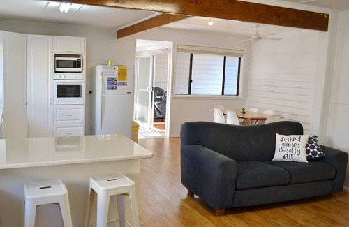 Great cottage perfectly located for your family beach holiday in Hat Head. A short 130m walk to the beach for a swim or to the Bowling Club for lunch or dinner. With a renovated kitchen and recently painted it is well appointed but still has the charm of a beach cottage holiday. Great covered deck with outdoor setting and gas BBQ for you to enjoy the outdoors while the kids play in the yard. Bring the family and enjoy our great beaches or stroll to creek for a snorkel on the high tide or to wet a line.