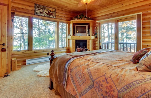 The Conger Island le presenta el lujo para todos sus invitados, incluido un hermoso porche con mosquitero, puertas ocultas para que los niños exploren, las ardillas ardientes residentes que aman comer de su mano y dos instalaciones de lavandería para su comodidad. En el interior, los huéspedes se sienten como en casa con múltiples televisores de pantalla plana, un bar completo, encimeras de granito e internet inalámbrico. Las amenidades únicas y lujosas continúan en los tres baños, que incluyen una bañera de relleno montada en el techo, lavabos antiguos y una ducha de vidrio de piso a techo que ofrece la ilusión de bañarse al aire libre entre los majestuosos pinos y la espectacular fachada del lago. Un espacio adicional para dormir en la parte superior de la casa alberga una cama king con vistas al agua.