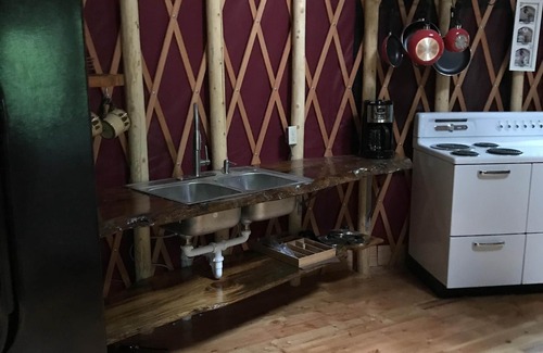 Nuestros yurtas son justo lo que buscas para tu escape MT. Estas yurtas ecológicas se encuentran en una propiedad arbolada, a solo 7 millas de la entrada de West Glacier para el Parque Nacional Glacier. Esta yurta cuenta con una cama king size, área de cocina con fregadero, nevera y estufa. También incluye una sala de estar, mesa de comedor y chimenea de propano. Cada yurta también tiene una casa de baños adjunta con ducha, inodoro y tocador.