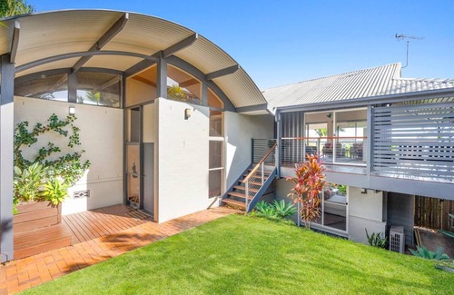 Designed by award-winning architect Mark Trotter, this exceptional villa offers an effortless indoor-outdoor flow to create a private resort-style oasis, perfect for families or groups looking to soak up Banora Point's relaxed vibe. Cool off in the saltwater swimming pool, fire up the BBQ, and dine alfresco overlooking the lush tropical grounds. You’ll be a 10-minute drive from Fingal Head and Dreamtime beaches, and just five minutes from Tweed Heads and countless cafes and restaurants.