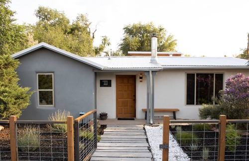 Enjoy our lovely North Valley home in Los Ranchos! Bike/Walk to Los Poblanos, cafes, breweries and restaurants. Perfect Balloon Fiesta location! Our unique home is comfy with modern touches for your stay. Enjoy a meal on the back patio surrounded by beautiful flowers and plants. Gather around the outdoor fire and roast some marshmallows with the kids. Zen out in our separate yoga studio to catch a solo meditation or yoga session.
