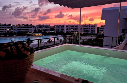 Nuevo (2025) Penthouse de lujo en dos plantas junto a la playa privada de la Laguna Cristalina más grande del Caribe.