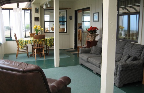 The Pirate's Cove se encuentra en lo alto de un acantilado y ofrece vistas panorámicas del Océano Pacífico, la Bahía Tomales y la Bahía Bodega. Mira cómo los ciervos deambulan por el vecindario y los halcones se disparan. Esta es la casa perfecta para grandes reuniones familiares. La cocina y el comedor son muy amplios y pueden manejar grandes fiestas. Puede disfrutar de increíbles puestas de sol desde la cocina o la mesa del comedor. La sala de sol es un lugar fantástico para relajarse y leer un libro o sacar los juegos de mesa y disfrutar de las vistas. Esta casa tiene vistas al océano desde la sala de estar, cocina, comedor, solárium y dormitorio principal. El patio trasero está cercado con una barbacoa, una bañera de hidromasaje, área de patio, área de picnic y fregaderos de acero inoxidable. Esta casa de 3 dormitorios y 2 baños tiene algo para todos en la familia. Hay una gran cantidad de vida silvestre en la playa de Dillon. A solo 1 minuto en coche de la playa o un corto paseo cuesta abajo.