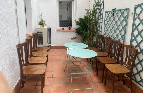 Nuestro apartamento es un bajo y cuenta con 2 amplios patios. Uno de ellos cuenta con un área para sentarse. Es un apartamento muy luminoso y cuenta con una decoración exquisita.