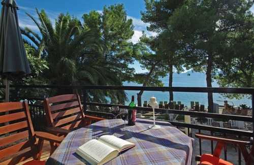 La casa está ubicada en una bahía idílica directamente en 1. Rema por el mar, de modo que una gran piscina natural esté prácticamente en la puerta. Hermosas y largas playas de ensueño hechas de finos guijarros blancos son la figura de Podaca. En frente de la casa hay una terraza privada de 300 m² equipada con mesas y sillas para invitados. Aquí puede leer un buen libro, disfrutar de una copa de vino, ver el atardecer o simplemente escuchar el sonido del mar. Se proporcionan tumbonas y sombrillas.