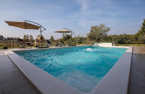 Usted y sus hijos quedarán maravillados con el bien equipado parque infantil situado junto a la casa. El parque infantil tiene un gran tobogán adecuado para los niños más pequeños, mientras que los mayores pueden jugar al fútbol o al baloncesto. Mientras sus hijos juegan, usted puede sentarse en el gran banco de madera, vigilar a sus hijos y leer un buen libro.Loborika es un pequeño pueblo en el municipio de Marcana, situado a pocos kilómetros de la ciudad costera más grande de Istria, Pula. Marcana es una zona tranquila con naturaleza virgen y monumentos históricos. Aquí usted puede realmente disfrutar de su paz y tranquilidad. La ubicación de la villa ofrece un equilibrio perfecto de tranquilidad y disfrute privado, lejos del ajetreo y el bullicio de la ciudad y las multitudes de turistas, mientras que estar cerca de las principales ciudades de Istria. Pula, la ciudad más grande de Istria, no está lejos de la villa y es mundialmente famosa por su asombroso Coliseo, un antiguo anfiteatro construido en el siglo I durante el reinado del emperador romano Vespasiano. Además de bellezas culturales e históricas, Istria ofrece experiencias culinarias únicas, muy conocidas en esta parte de Europa. Prosciutto casero (prsut), vino, pasta de Istria (fuzi) son sólo algunas de las delicias de la verdadera cocina mediterránea de Istria. La península de Istria también alberga uno de los parques nacionales más bellos de esta parte de Europa: Brijuni.