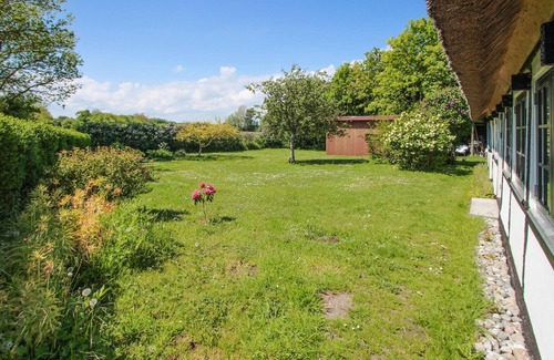 Esta casa de entramado de madera modernizada es un lugar acogedor para sus próximas vacaciones. Póngase cómodo en las habitaciones auténticamente amuebladas: después de un día activo en la isla, puede organizar noches de juegos y películas en la sala de estar que toda la familia recordará con cariño durante mucho tiempo. El jardín ofrece mucho espacio para jugar. Disfrute del sol aquí fuera, en este bello entorno, la relajación vacacional no tardará en llegar.