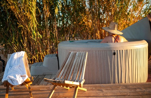 Los servicios de ocio y esparcimiento en esta casa de campo incluyen una bañera de hidromasaje.