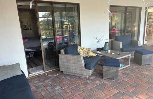 We also have another room as well. Enjoy a weekend or longer in our Country Club home. Once parked in the driveway, access though the garage and go back to your relaxing room with TV, Fridge, and access to the den, lanai with pool, kitchen and coffee bar. Weather your here for work or relaxation you will enjoy a quiet peaceful time. We are on site to be sure you have everything you need to make your stay enjoyable. Close to the beach and shopping as well as hundreds of restaurants, you will love it!