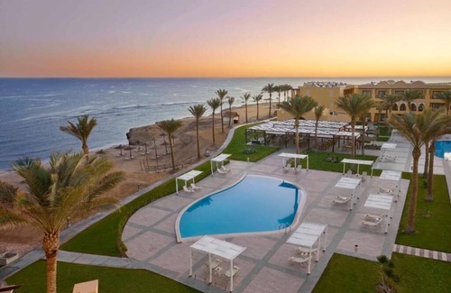 Wake up in a coastal oasis with Red Sea, pool, or garden views—each room offering a serene escape. Enjoy multiple pools, a splash zone, private beach, spa bliss, yoga, and global cuisine. Just 10 mins from the airport and near vibrant reefs and Wadi El Gemal. With live shows, waterpark fun, and family perks, it’s the perfect blend of relaxation and adventure.