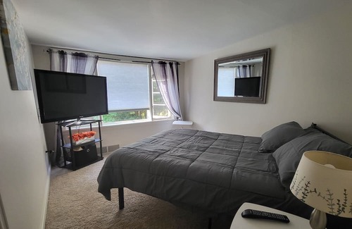 La cocina está equipada con horno, placa de cocina y frigorífico, además de cafetera y tetera, máquina de hielo y microondas. El cuarto de baño incluye un secador de pelo, toallas y papel higiénico. Y no tendrás que llevarte ropa de más, porque podrás aprovechar la lavadora y la secadora. Otras comodidades incluyen ropa de cama, una tabla de planchar, aire acondicionado y calefacción.