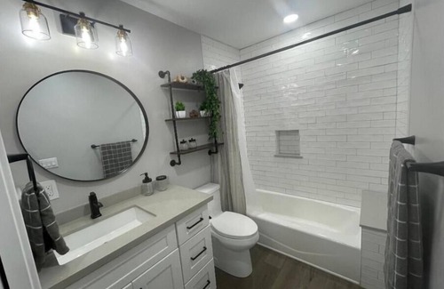 Al instalarte en este alojamiento de 1 dormitorio y 1 baño, encontrarás una sala de estar, aire acondicionado y escritorio. Conéctate al wifi gratis, o relájate frente a un Smart TV. El cuarto de baño incluye un secador de pelo, toallas y jabón. Prepara una comida casera en la cocina, equipada con horno, placa de cocina y frigorífico, además de cafetera y tetera, máquina de hielo y microondas. Y gracias a la lavadora y la secadora, podrás viajar con poco equipaje. Otras comodidades incluyen ropa de cama, una tabla de planchar, servicio de limpieza disponible a petición y calefacción.