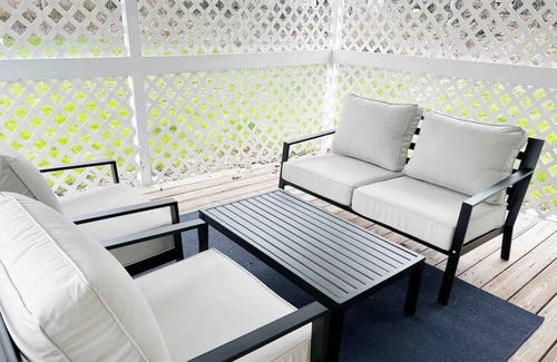 Relájate en el jardín, que dispone de servicios como los muebles de exterior, o tómate algo en el porche o patio de esta casa de vacaciones de 88 m². En cuanto al interior, puedes disfrutar del wifi gratis y de la televisión por satélite o cable.