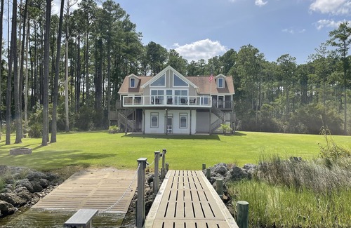 Riverfront property with dock and ramp. Dolphins, fish, boat, swim & more Se encuentra en Hobucken. Riverfront property with dock and ramp. Dolphins, fish, boat, swim & more ofrece alojamiento, con Aire acondicionado, Vista, Vista al océano, Entre otras comodidades. Estas características Casa Aire acondicionado, Vista, Vista al océano, Para que su estadía sea cómoda.