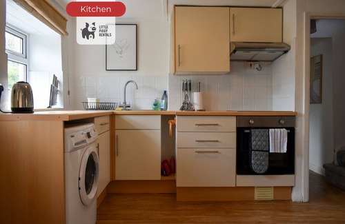 La cocina está equipada con horno, placa de cocina y frigorífico, además de cafetera y tetera, microondas y utensilios de cocina. El cuarto de baño incluye un secador de pelo y toallas. No necesitarás llevarte mucho equipaje, porque hay una lavadora. Otras comodidades incluyen una sala de estar, ropa de cama, una tabla de planchar y calefacción.