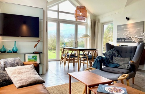 La decoración de los clásicos escandinavos y el arte moderno ofrece claridad y espacio, mientras que la estufa danesa y los materiales de alta calidad garantizan una sensación de bienestar. Difícilmente notará los dos televisores LCD y el sistema Bose Wave, porque el gran Schleikino está justo en frente de sus ojos.