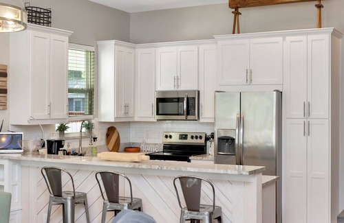 Welcome to Tampa, Florida, and the Seminole Heights area! Stroll to the historic Armature Works for a variety of dining and entertainment options, enjoy a scenic walk or bike ride along the beautiful Riverwalk, and explore the bustling nightlife and rich cultural heritage of Ybor City. The University of South Florida campus is also nearby. Sports fans will appreciate being close to the home of the Tampa Bay Buccaneers and the Tampa Bay Lightning, making it easy to catch a thrilling game. Whether you're here for business, leisure, or a bit of both, you'll find plenty to see and do just steps from our doorstep. It features five bedrooms (one kings, two queen, one bunk bed (twin and double), one double futon, and one twin folding cot) and four bathrooms. Additionally, there is a great backyard with an in-ground pool and plenty of seating for everyone. The house is well-equipped and stocked with everything you need for a great stay.