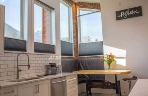 Sea To Sky House was completed in 2019 and is centrally located in the heart of Squamish. Pull into your parking spot (EV fast Charging Station Accessible), drop off your outdoor gear in your private secured, ground floor storage space and head upstairs to your Squamish landing pad. This unique space hosts tons of features, all listed below: