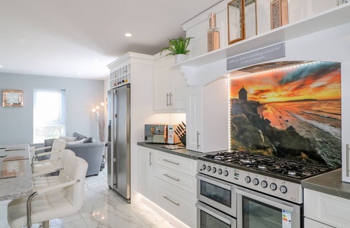 Aprovecha para preparar una comida casera: dispones de horno, frigorífico y lavavajillas, además de microondas y utensilios de cocina. Conéctate al wifi, o relájate frente a televisión. Y hay acceso a una lavandería, de modo que necesitarás poco equipaje. Otras comodidades de este alojamiento de 4 dormitorios y 2 baños incluyen ropa de cama y calefacción.