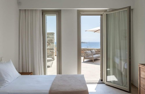 For those who crave the ultimate beach experience, a private path winds its way through the meticulously manicured grounds, leading you to a secluded beach below. Here, you can immerse yourself in the crystal-clear cobalt-emerald waters of the Aegean Sea, feeling the gentle caress of the waves against your skin.