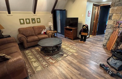 The open concept living space connects seamlessly to a well-equipped kitchen and dining area, perfect for après-ski meals or summer get-togethers. With multiple sleeping areas including bunk beds and twin beds for the kids, plus a spacious master bedroom with private balcony. Central heat/AC keeps you comfortable year-round. There are 3 bedrooms: the master has a king bed, the second bedroom a queen bed and the third bedroom has 2 twins. There is also a loft with 2 sets of bunk beds. There is a large front deck with patio furniture, a nice sized back deck with seating, and a fenced in back yard. A dog is allowed with additional fees.