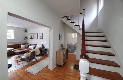 Escape to a tranquil retreat at this 3-bedroom, 1 bath, 1500 square feet Victorian house in Wallace. Enjoy the cozy bedrooms, featuring 1 king bed, 1 queen bed & 1 full bed with a twin pull out trundle that can accommodate 7 people, perfect for a good night's sleep after adventuring Historic Wallace & its surrounding areas. The home's bathroom offers a relaxing clawfoot bathtub to unwind in. The kitchen is fully stocked for a night in or people who enjoy cooking. The dining room is spacious and comfortable for enjoying dinner with friends & family or for playing some of the games stocked at the home. The living room offers lots of sitting area to hang out, laugh & make unforgettable memories with your family and friends.
